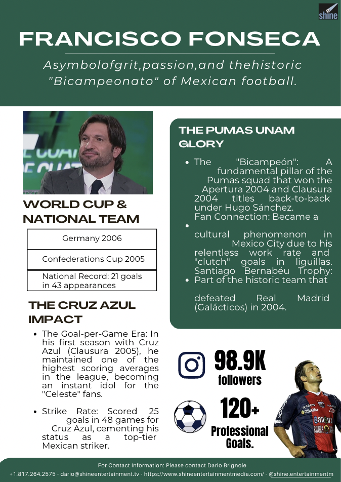 Kikín Fonseca is a former Mexican striker known for his charisma and goal-scoring ability. He played for clubs such as Cruz Azul, Pumas UNAM, and Benfica in Portugal, and represented Mexico at the 2006 FIFA World Cup.