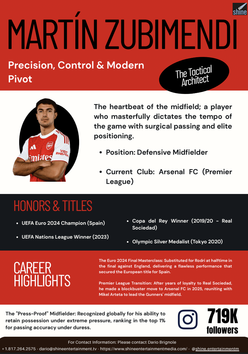 Martín Zubimendi is a Spanish defensive midfielder known for his tactical intelligence, composure, and precise distribution. A key player for Real Sociedad and the Spanish national team, he stands out for his positioning, leadership, and ability to control the tempo of the game.