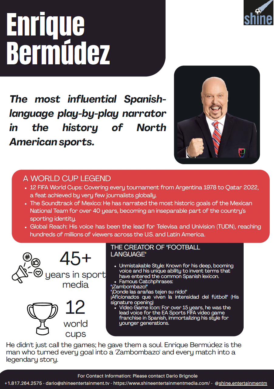 He has worked with major networks including Televisa, Univision, and TUDN, becoming a reference in sports media.
